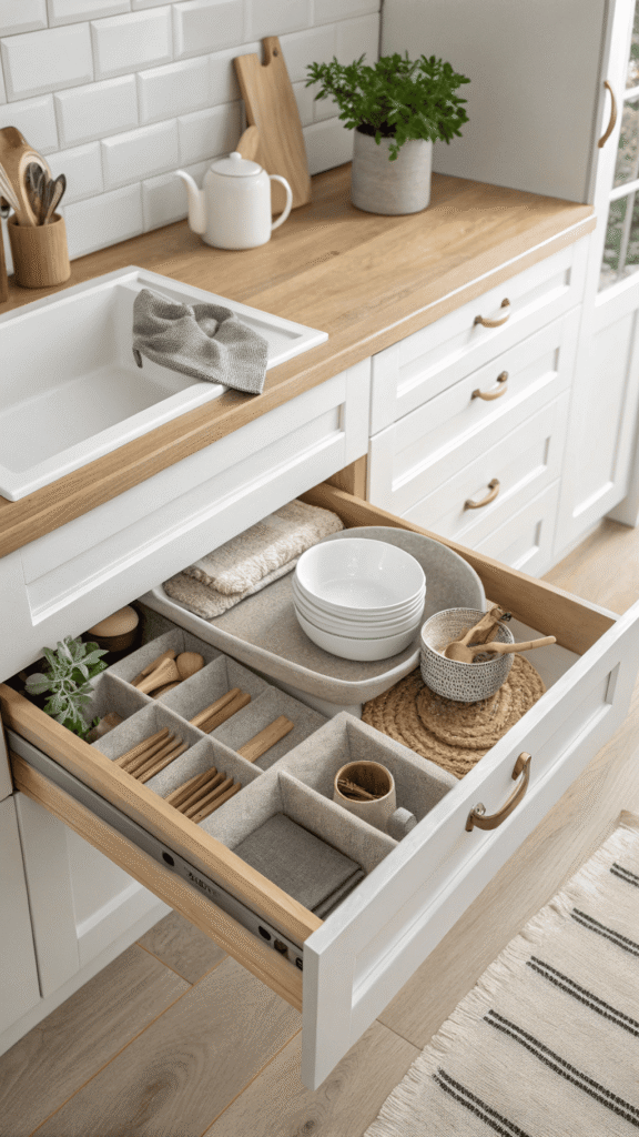 The ideas below focus on practical, easy updates that make your kitchen drawers more functional and easier to maintain.